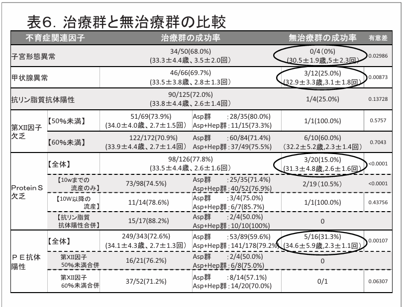 しかしながら、厚生労働省不育症研究班の出した日本のデータによると、プロテインS活性が60%未満の不育症患者の無治療群の流産率が非常に高かったので、私は、治療は必要と考えます。