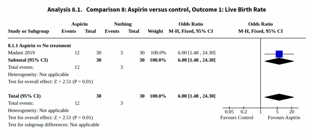 従って、アスピリンが不要の人も多く混ざっているため、アスピリンの有効性ははっきりしませんでしたが、少なくともアスピリンが着床の邪魔をしていない事は明らかです。