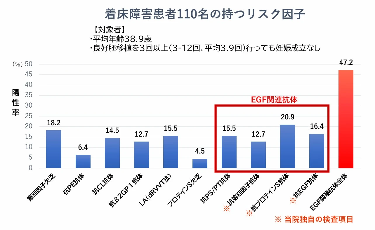 着床障害患者に不育症検査を行うと、不育症患者と同様の項目で陽性となることが